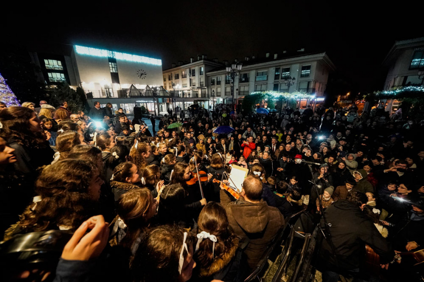 En primer lugar se han encendido las luces navideñas desde la Plaza Mayor. La alcaldesa, que ha sido la encargada de encender la iluminación, ha dado la bienvenida a la Navidad y ha deseado a todos lo mejor para estas fiestas. Durante el acto, al que también han asistido miembros de la Corporación Municipal, han actuado los coros infantiles de los colegios San José de Cluny y Pinar Prados con villancicos y canciones propias de estas fechas.