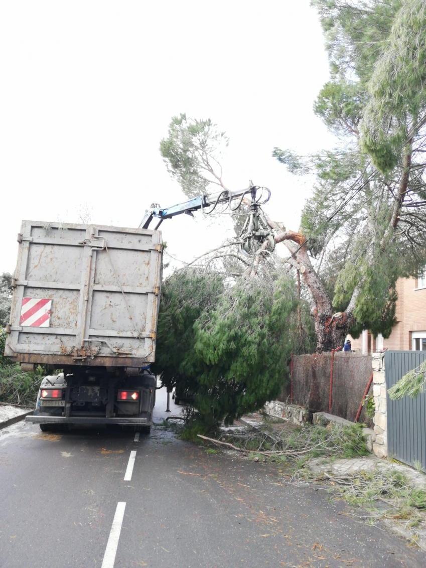 El Ayuntamiento de Pozuelo de Alarcón intensifica estos días, y continuará haciéndolo durante todo el fin de semana, las labores de recogida de los restos de la poda de las ramas que estaban en mal estado por culpa del temporal Filomena.