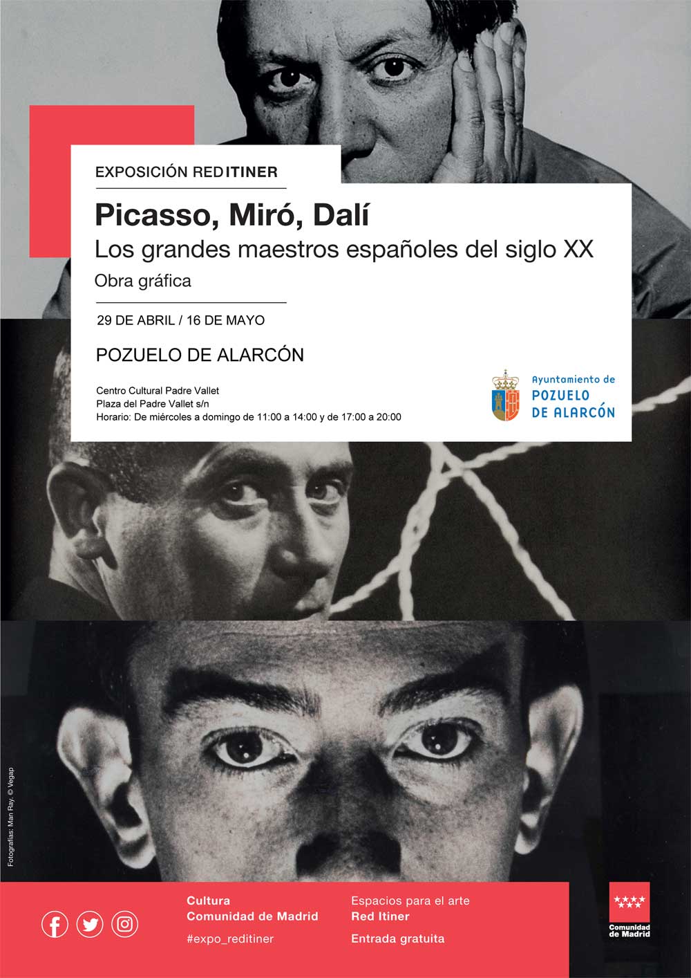 El Centro Cultural Padre Vallet de Pozuelo de Alarcón acogerá la obra gráfica de los tres genios españoles de la pintura del siglo XX: Pablo Picasso, Salvador Dalí y Joan Miró, en una exposición que permanecerá abierta al público del 29 de abril al 16 de mayo.
