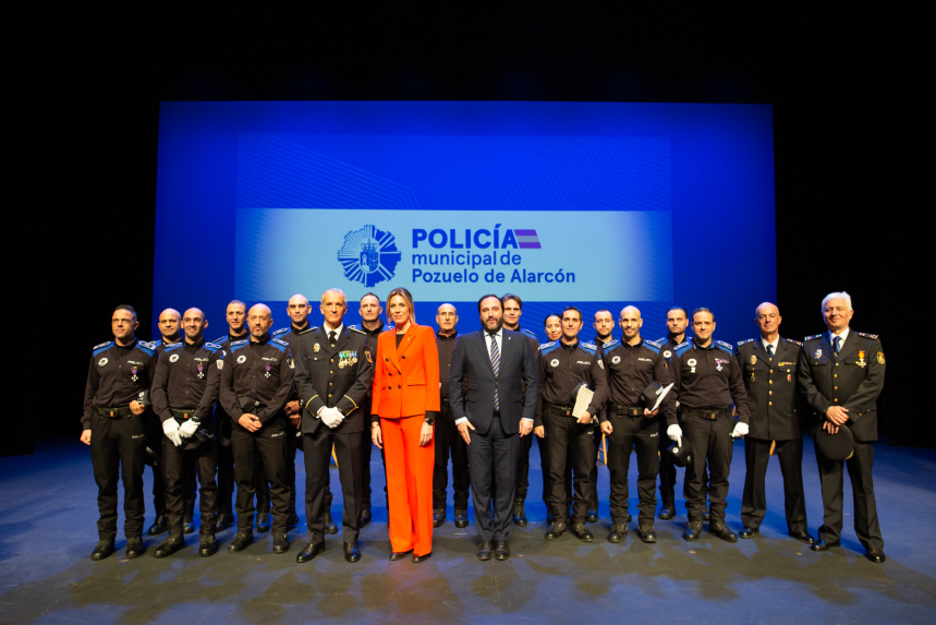 En el acto se ha realizado la entrega de medallas y reconocimientos a agentes al mérito policial y al trabajo. También se han entregado felicitaciones públicas a varios policías municipales y una medalla de homenaje y colaboración con la que se ha distinguido al Inspector de la Brigada Local de Policía Judicial de la Comisaría Nacional de Policía de Pozuelo de Alarcón, José Salvador Caparrós García.