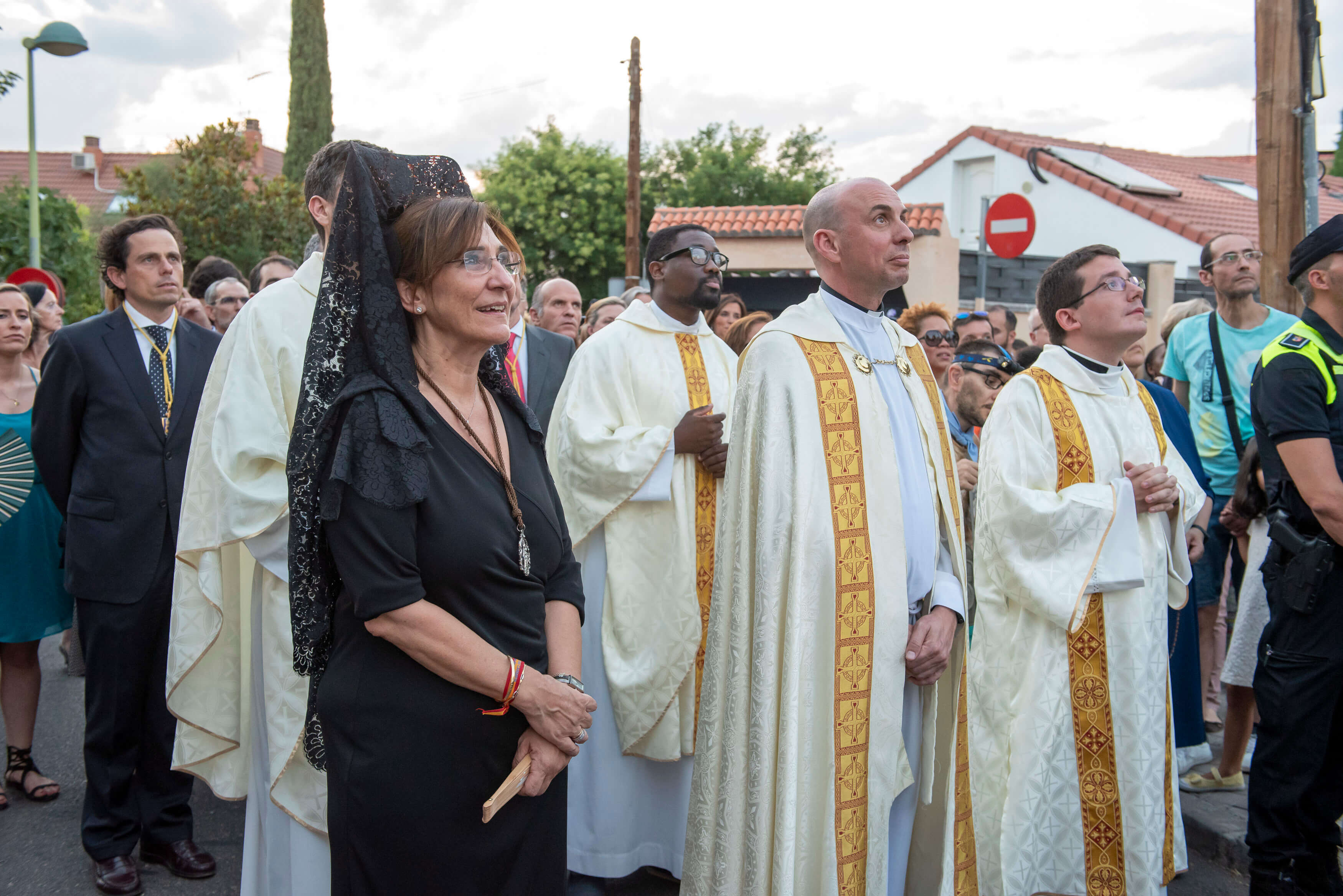 La alcaldesa, Susana Pérez Quislant, junto a otros miembros de la Corporación Municipal, se unió ayer a los cientos de feligreses que participaron en este acto y recorrieron las céntricas calles de la zona de la Estación. Tras esta celebración, que contó con la intervención de la Coral Kantorei y la banda de música La Ynseprable, la fiesta continuó con la limonada popular, el espectáculo de fuegos artificiales y la música de la orquesta Jenasan.