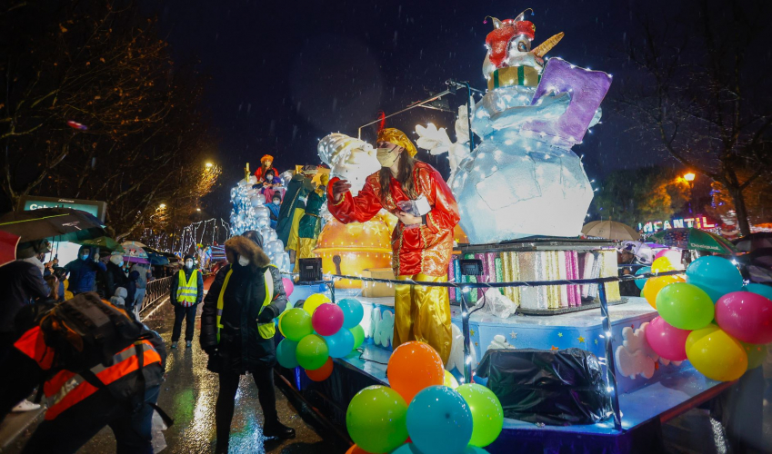 La Cabalgata, con 12 carrozas, de las que tres son las de los Reyes Magos, más las 9 de fantasía junto a las de las asociaciones y entidades participantes, ha comenzado en la glorieta Víctimas del Terrorismo y ha finalizado en la Plaza Mayor.