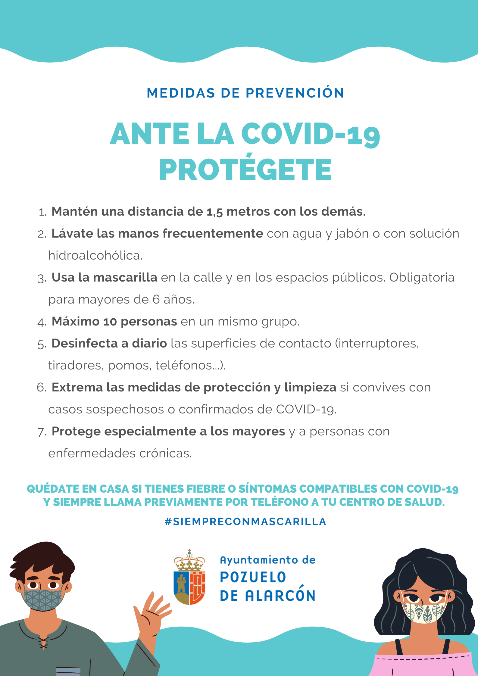 La agrupación de personas de carácter privado o no regulado en la vía pública o espacios públicos se limita a 10 personas (salvo que se trate de personas convivientes); mantener una distancia interpersonal mínima de al menos 1,5 metros, la higiene de manos correcta y frecuente y la recomendación de no compartir vasos, copas, platos o cubiertos, son otras de las medidas que se recuerdan.