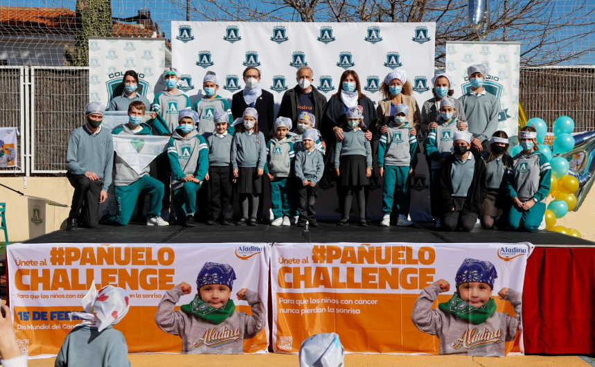 Este martes, 15 de febrero, se celebra el Día Mundial del Cáncer Infantil y Pozuelo de Alarcón ha querido rendir homenaje a los niños y adolescentes que padecen cáncer uniéndose a la campaña lanzada por la Fundación Aladina, el Pañuelo Challenge, en la que ha participado el Colegio Alarcón de la ciudad. Con el #PañueloChallengeAladina se quiere homenajear a los niños y adolescentes con cáncer que pierden el pelo a causa de los tratamientos oncológicos.