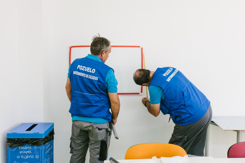 El Ayuntamiento de Pozuelo de Alarcón pone en marcha la brigada especial de mantenimiento para los colegios de la ciudad. Se trata de un equipo específico para atender las necesidades de los centros educativos públicos de Educación Infantil, Primaria y CEIPSO de la ciudad. La alcaldesa, Paloma Tejero, ha visitado este viernes el colegio público Pinar Prados de Torrejón con motivo del inicio de curso donde ha presentado este nuevo equipo de mantenimiento para dar respuesta rápida a los centros y con los que cumple uno de sus compromisos electorales.