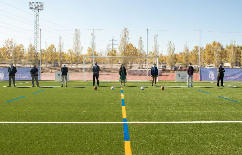 - Las obras han incluido la sustitución del campo de césped natural, por otro artificial, que permitirá su uso con marcajes de un campo de Futbol 11, dos de Fútbol 7 y uno de Rugby Alevín Sub-10.