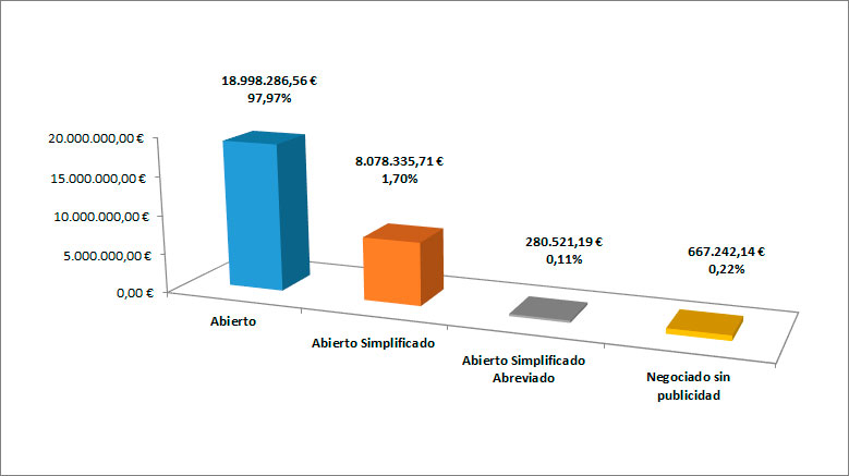 | Abierto | Abierto Simplificado | Abierto Simplificado Abreviado | Negociado sin publicidad | Contrato basado | Total* | |